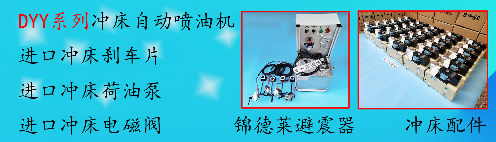 公司主要從事減震器研發(fā)、銷售、工程安裝。經(jīng)營主要產(chǎn)品有JEDLA氣壓式避震器、錦德萊氣壓式防震腳、液壓裁斷機減震墊、油壓沖床減震器、三坐標防震墊、三次元減震器、測量儀器隔震墊、樓上沖床減震墊、紡織機減震腳、繡花機避震器、注塑機減震腳墊、機械設備防振墊、吸塑機減震墊、三坐標減震器、沖壓自動涂油機、沖床自動噴油機、沖壓自動噴油裝置等工業(yè)機械防震產(chǎn)品。產(chǎn)品熱銷國內(nèi)市場。